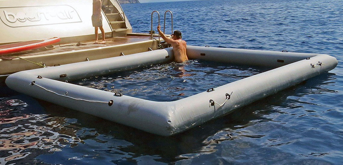Yacht Jellyfish Protection Pool is a nonslip inflatable PVC barrier ideal for boats, yachts, sailboats, and catamarans. Dimensions adjust for your requirements.