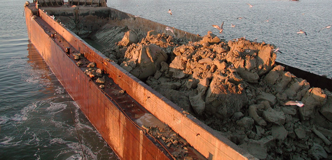 Um batelão de tremonha é um navio de dragagem que pode se dividir em seu eixo longitudinal para descarregar sua carga. Permitir tal operação; a barcaça é constituída por dois semircascos ligados por dobradiças na parte superior e cilindros hidráulicos na parte inferior. As dobradiças e os cilindros devem transferir todas as forças que atuam na interface dos meios cascos. Presume-se que os limites de projeto das dobradiças e dos cilindros hidráulicos regem a operacionalidade da barcaça.