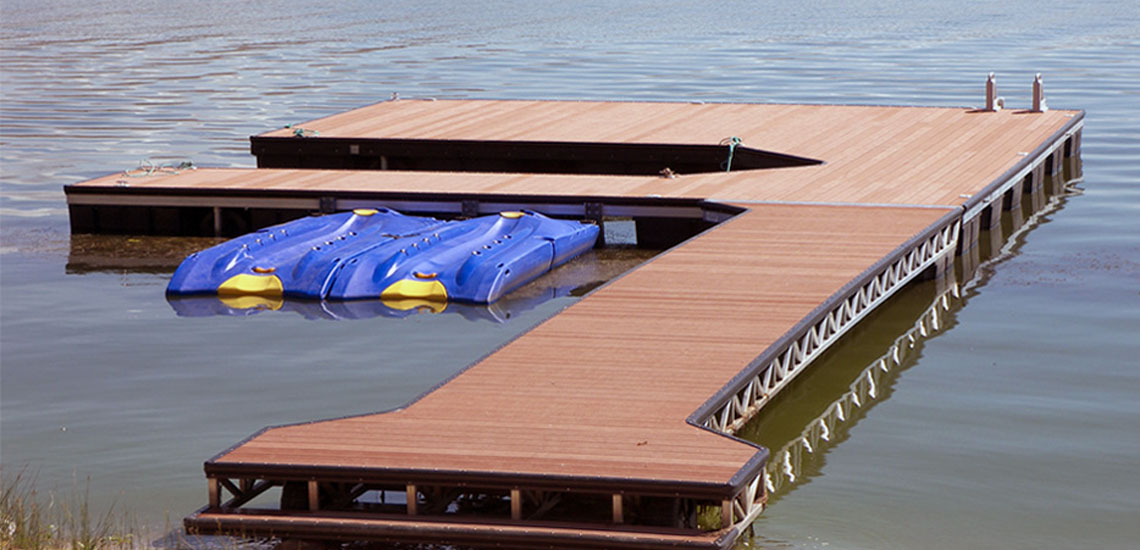 - Kuelea Dock kikamilifu anpassar kwa ngazi mbalimbali ya maji unasababishwa na mawimbi na tofauti msimu, mafuriko, na ukame, na kuifanya rahisi kwa wewe hop juu na mbali watercraft yako.