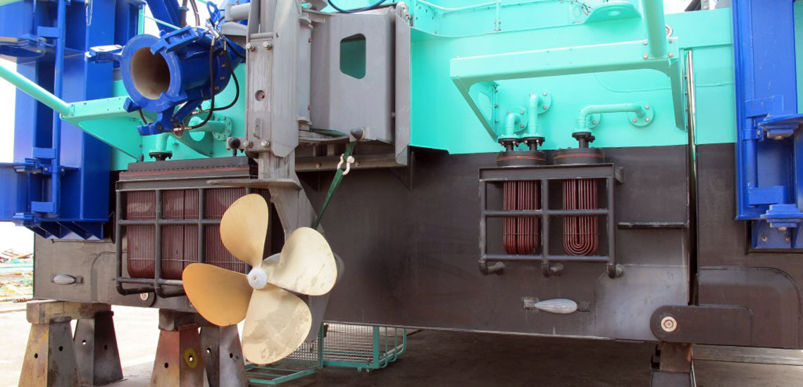 Cutter Kufyonza Dredger inaweza kuwa binafsi drivs au kuhitaji towage kati maeneo ya kazi. motors wote hydraulic na mitungi kazi kwa moja radial piston pampu inaendeshwa na injini ya dizeli. Maboresho katika ufanisi na akiba katika matumizi ya mafuta ni kuvutia ikilinganishwa na dredgers jadi. Nguvu zilizosakinishwa ni ndogo sana kuliko katika vidokezi vingine vyenye uwasilishaji sawa