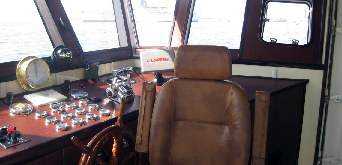 CabinA fully glazed wheelhouse high quality fit-out which includes seat.